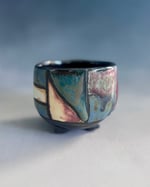 3" bowls with panels of Various Colors and Finishes, with a black interior and foot. Bowls sold individually.